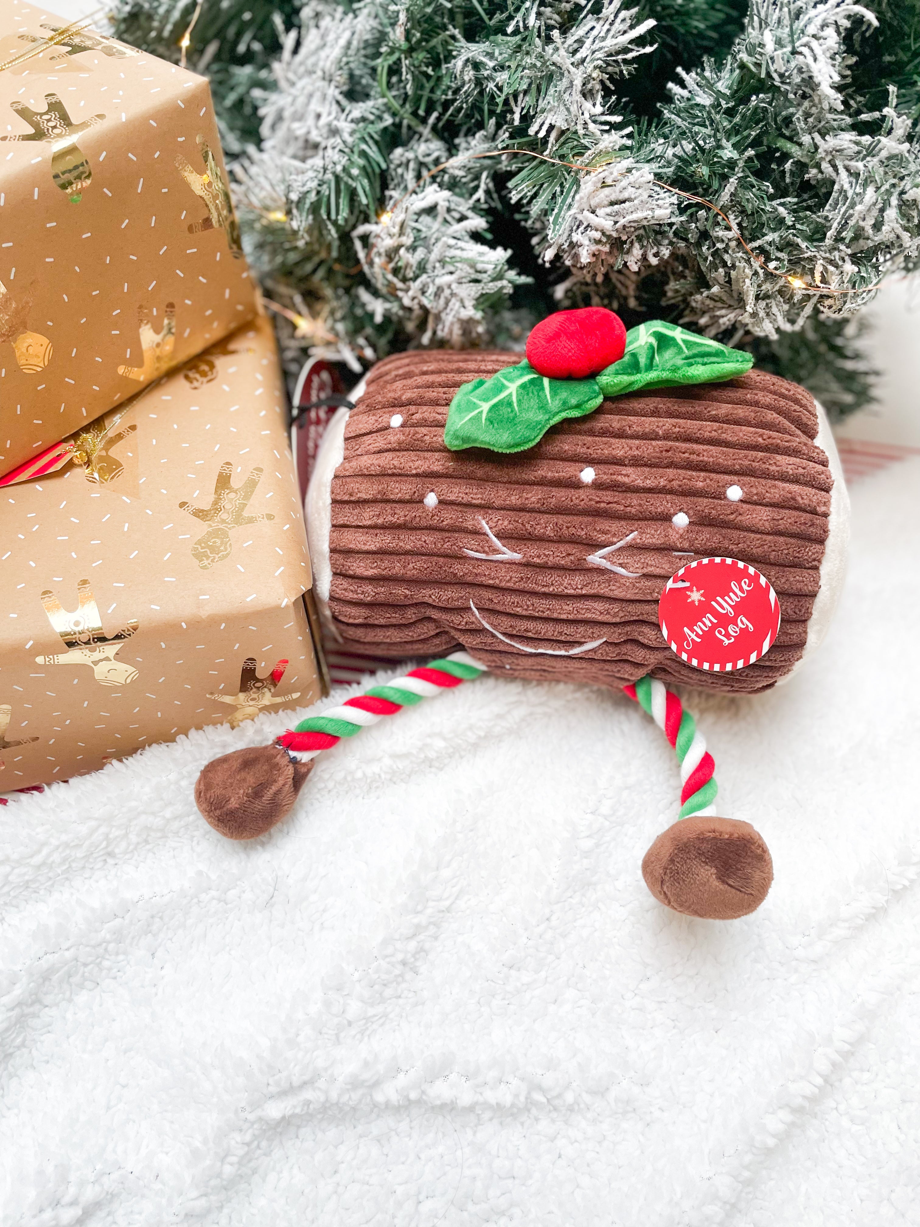 Ann Yule Log is a very cute Christmas plushie! Measuring around 25cm long with rope legs and crinkly holly leaves.