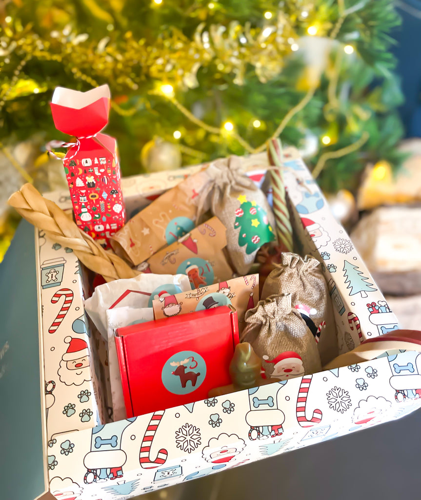 Individually wrapped and numbered veggie treats, natural treats, chews & limited edition festive treats all packed inside our luxury custom made boxes.