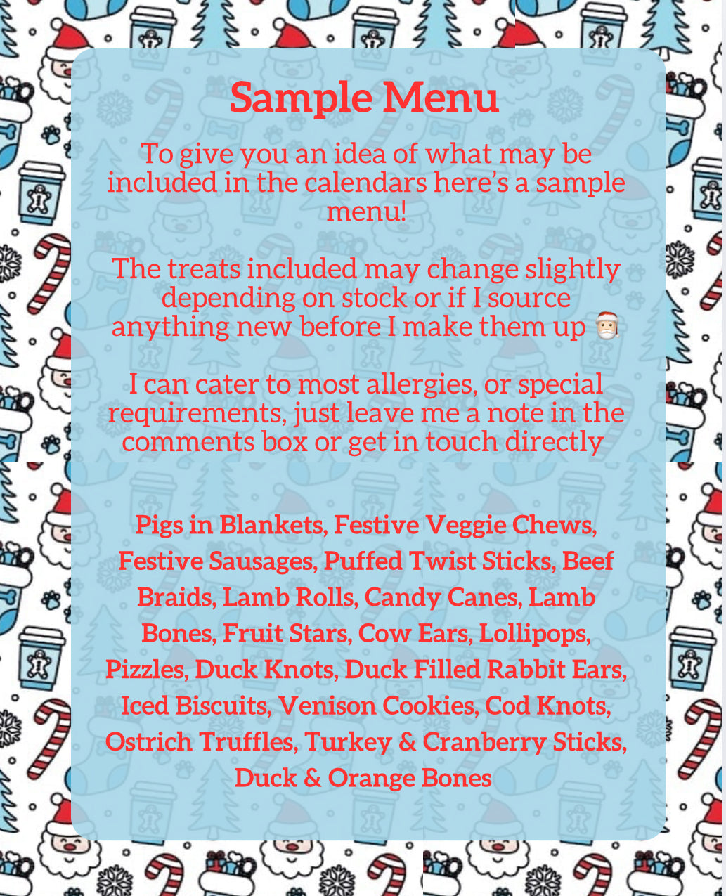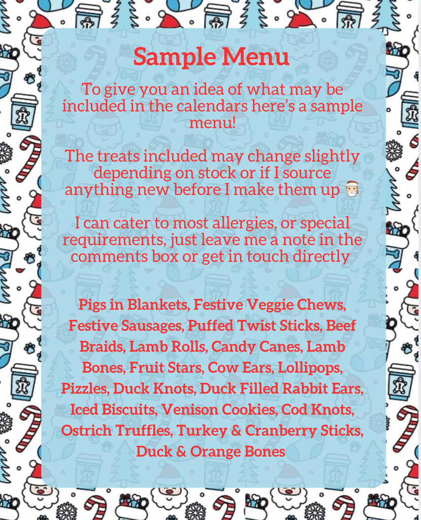 Each calendar will include a menu card so you can see exactly what your pups indulging in each day.