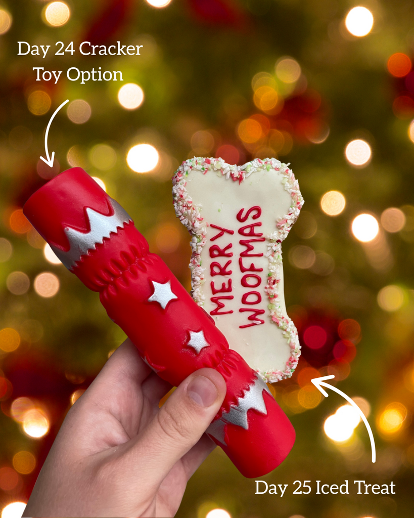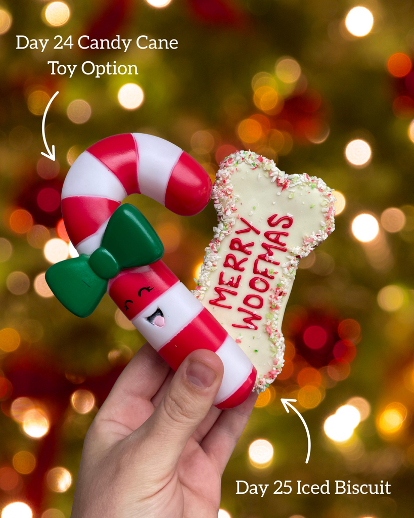 This year there is the option to have a toy instead of a treat on Christmas Eve! Choose from either a squeaky candy cane or squeaky cracker. If you’d rather just stick to treats though, just select the ‘no toy’ option.