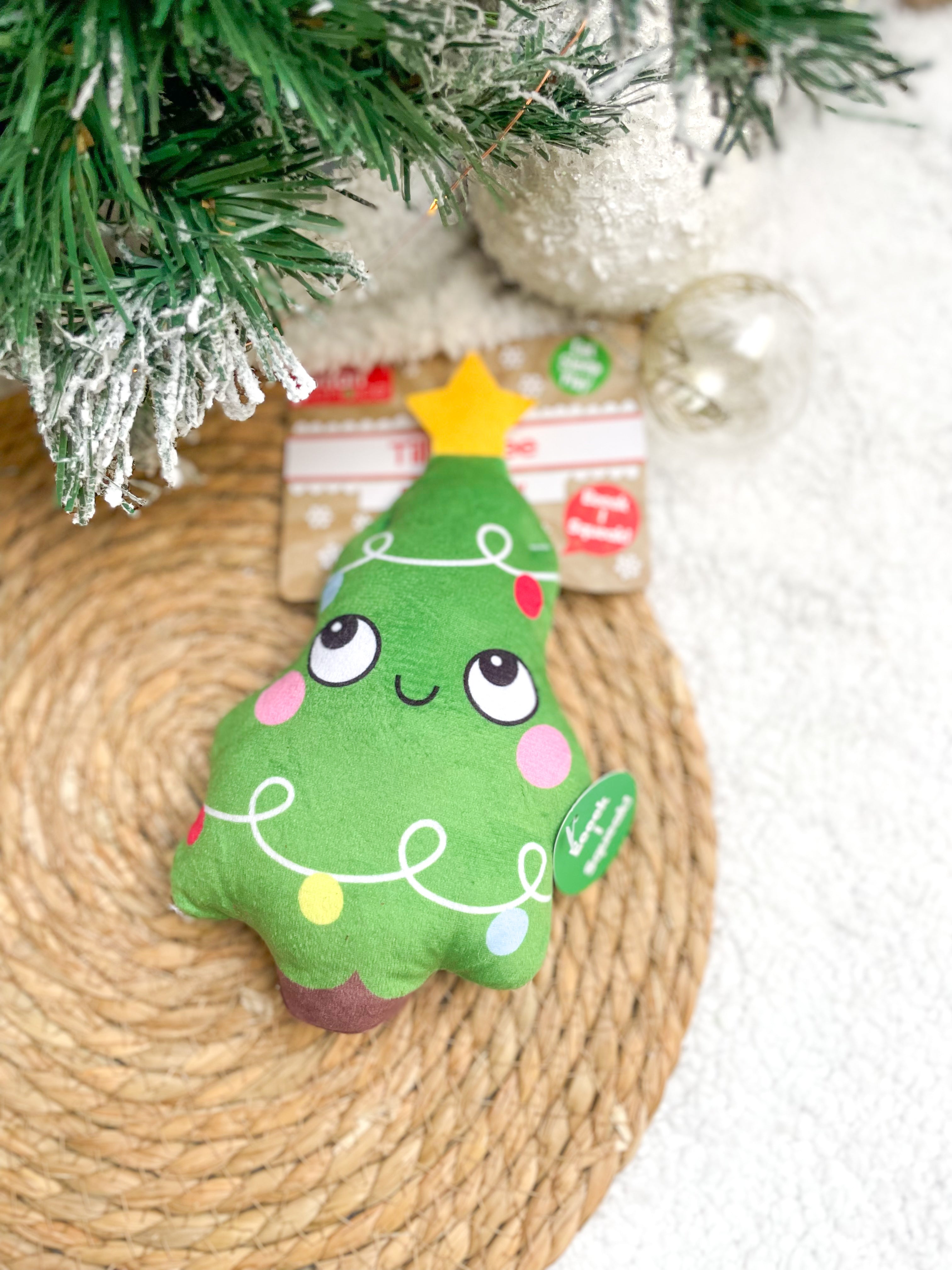 This small Christmas tree is a very cute festive plushie with a squeaker for extra fun!