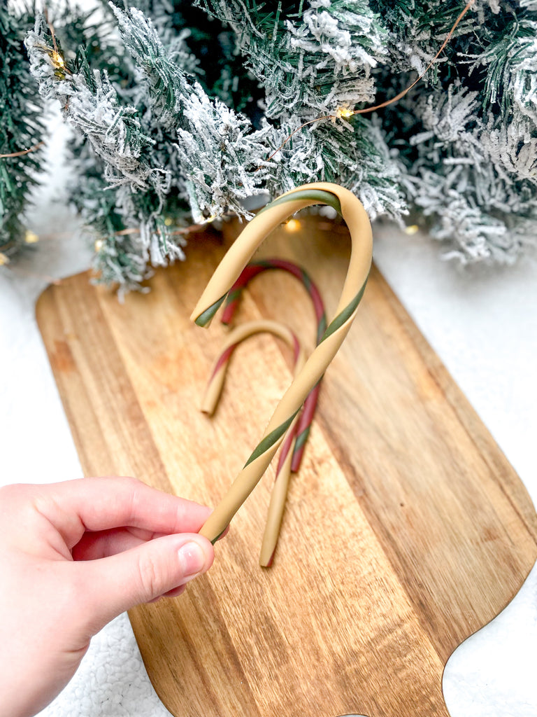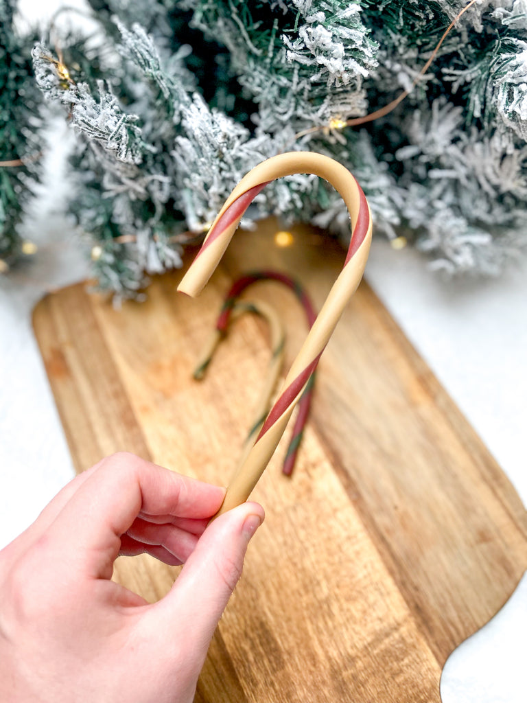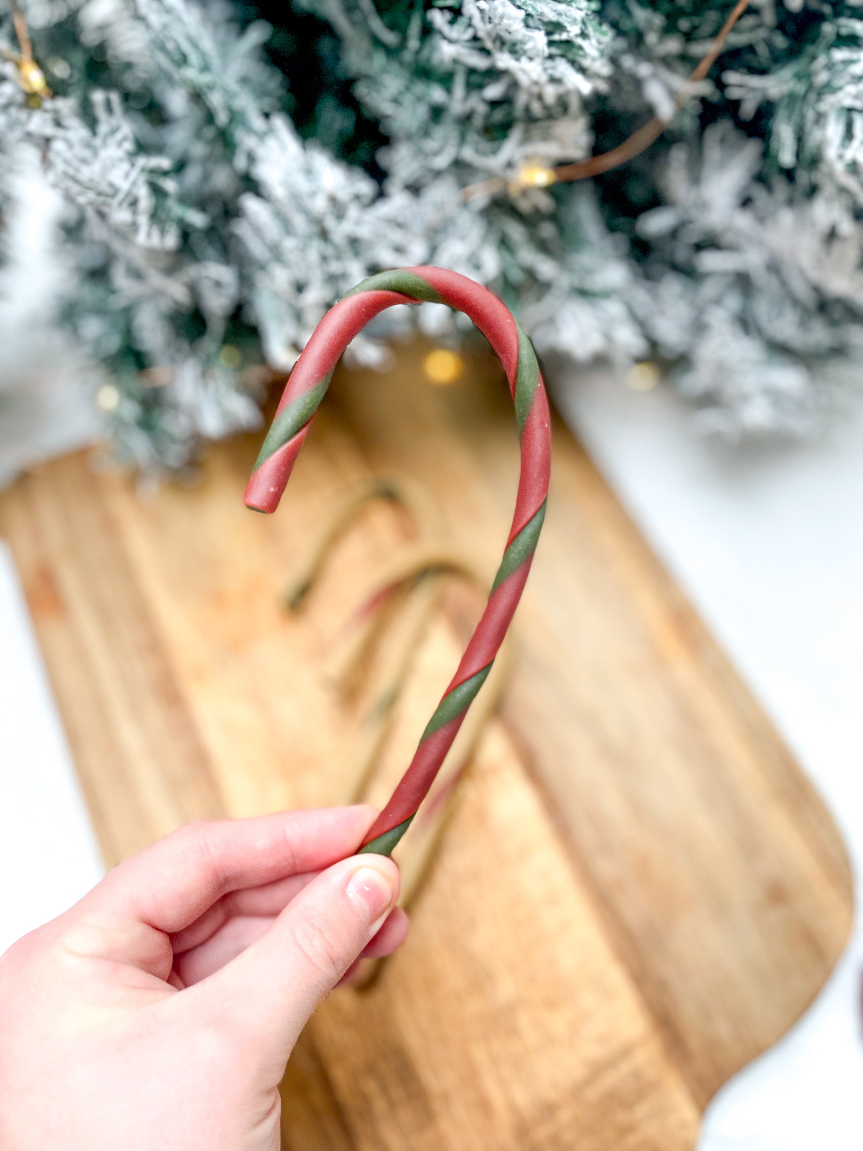 These veggie based candy canes with a hint of chicken are the perfect festive snack!